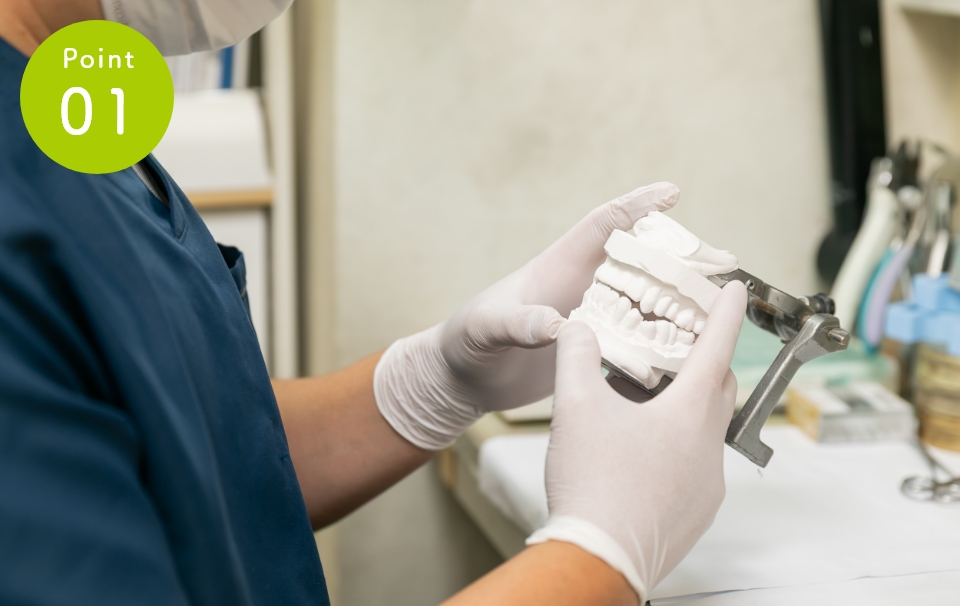 スピーディなご提供当院では院内に技工所を併設し、専門の技工士が在籍しております。これにより、高品質な補綴物をスムーズに提供することが可能です。