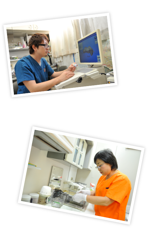 技工士として、患者さんに喜んでもらえるため、より正確で一人一人に合った仕事を心がけています。衛生士さんにとって、技工士が院内にいるメリットは、なんといっても情報の交換ができることですね。例えば、患者さんの印象をとる際、技工士さんが製作する上でどこの部分がきちんととれていないといけないかアドバイスすることができます。患者さんの要望を正確に技工士に伝えることによって、患者さんのイメージにより近い技工ができる・・・。つまり、患者さんにとっても、院内でしっかりと情報交換ができていることはとてもプラスになるのです。歯科医師と衛生士と技工士がたくさんの情報を共有しながら仕事をしていけば、レベルの高い歯科医院になると思います。